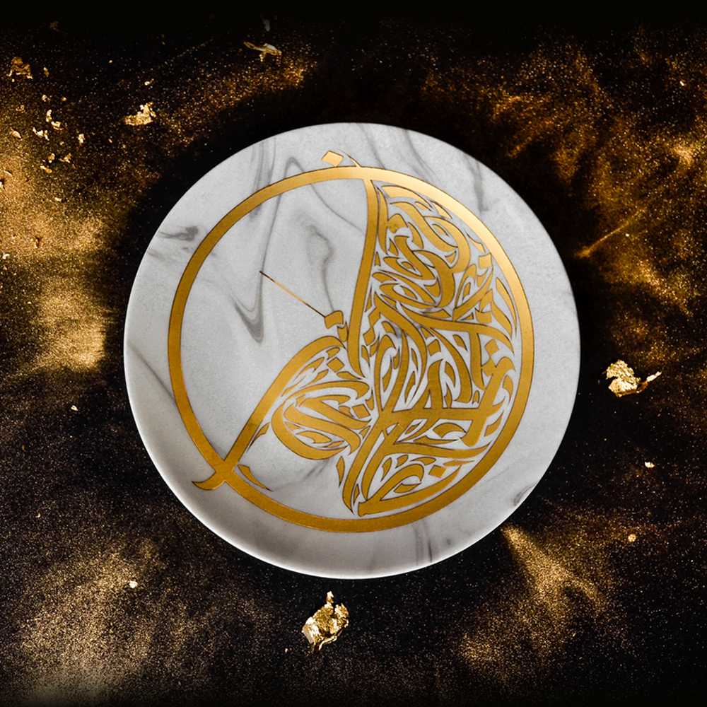 Limited edition of 99 porcelain set, each box contains 6 different porcelain plates with 18 carat gold
